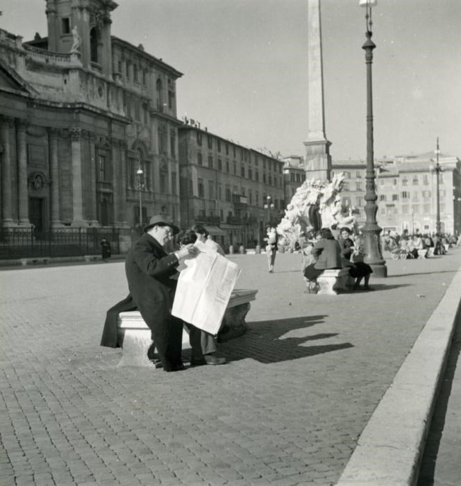 Lettura del giornale a Piazza Navona