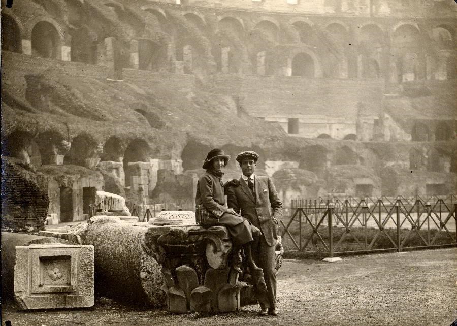 Paolo Lo Sardo e Ermenegilda Amalia Pavone, in viaggio di nozze, all'interno del Colosseo