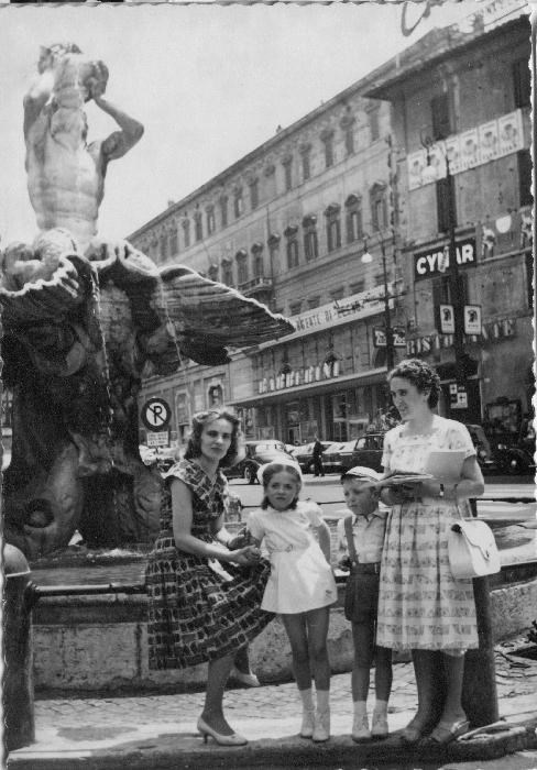 Elena Lazzeroni, la sorella Anna e i nipoti davanti alla Fontana del Tritone, a Piazza Barberini