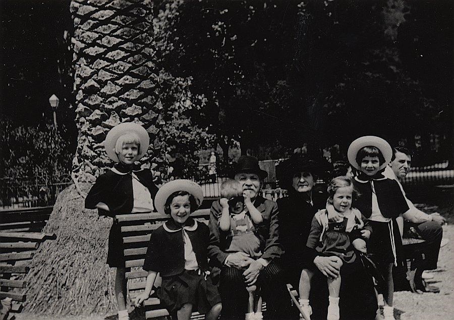 Maurizia, Michela e Marilena Foladore con i cugini e i nonni a Villa Borghese - Pincio.