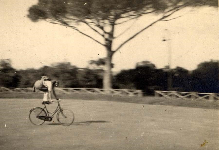 Maria Teresa Sebastiani e le sue acrobazie in bicicletta, sulla via del Mare