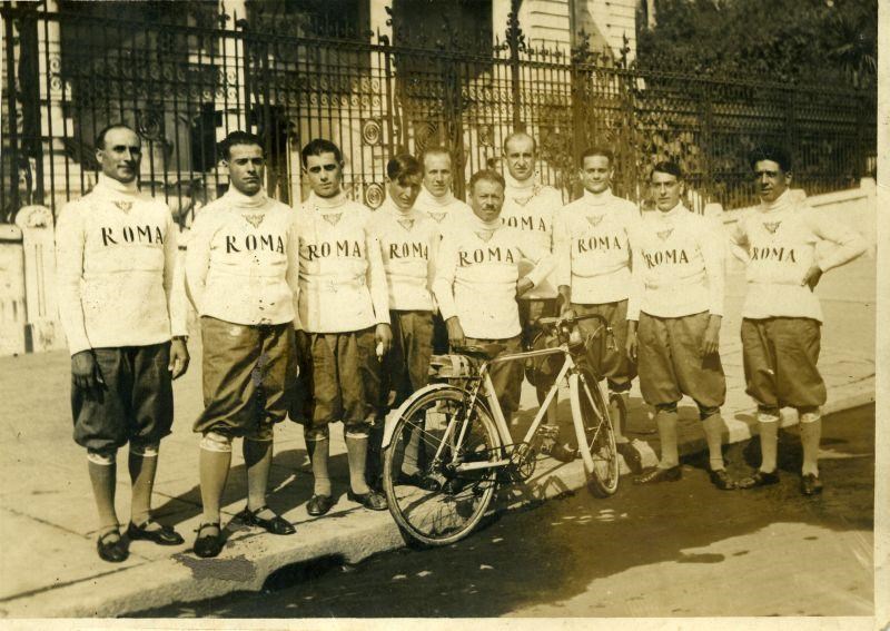 Gruppo di ciclisti in via Nazionale, prima della partenza per una gara.