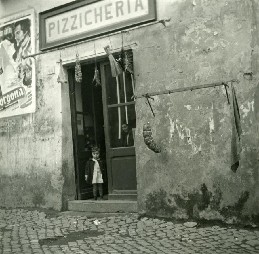 Bambino sull'ingresso di una pizzicheria a piazza San Giovanni della malva