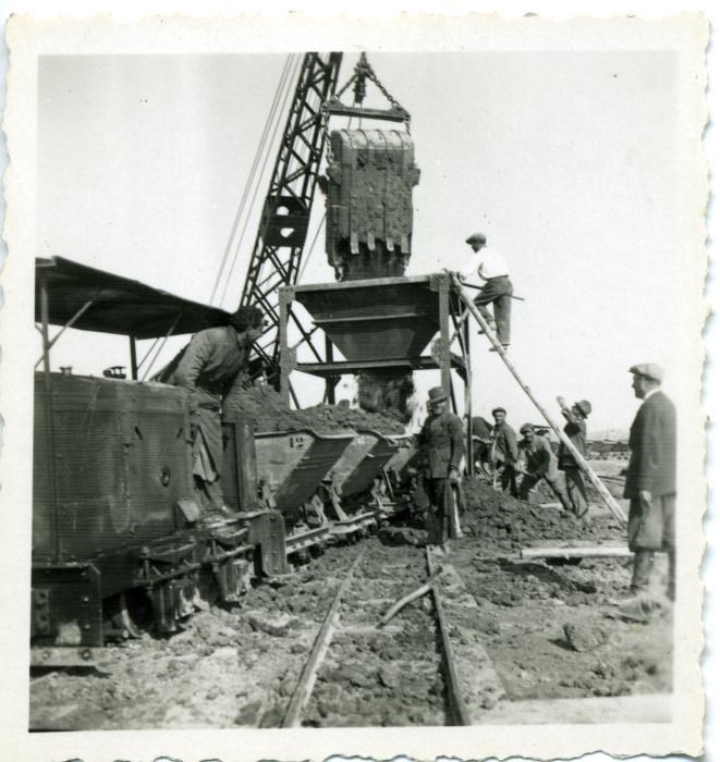Carico dei carrelli con gru-scavatrice, a Mezzocammino