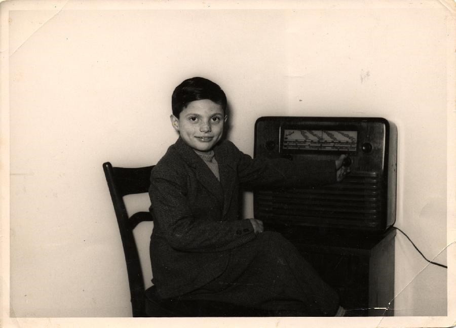 Domenico Franciulli in casa, accanto alla radio, posa per il concorso "Bimbi belli di Roma"