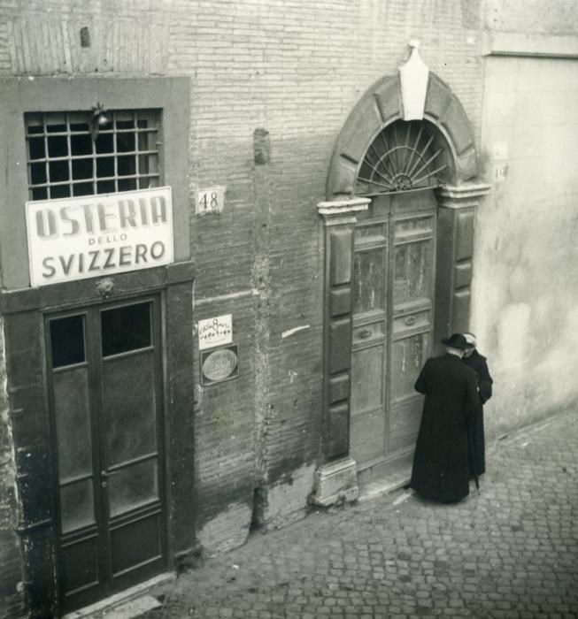 Due preti accanto all'Osteria dello Svizzero, in via della Lungara 48