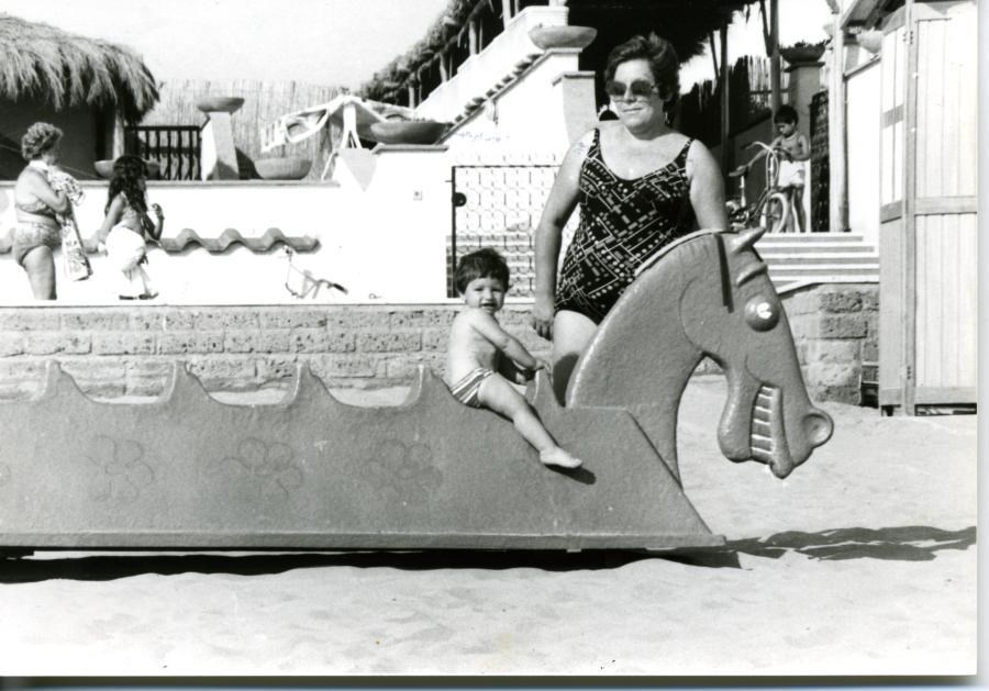 Federica Andreucci con la nonna Romana Carsetti sulla spiaggia del centro residenziale "Vela Bianca" di Tor San Lorenzo, durante un gita domenicale