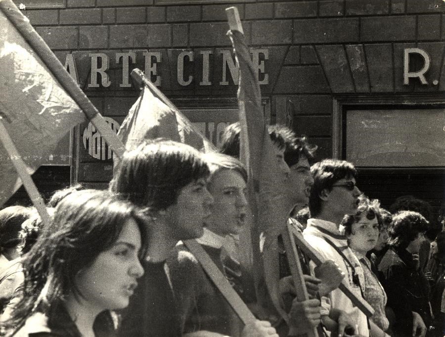 Francesca Iacovoni a una manifestazione studentesca in Corso Vittorio Emanuele