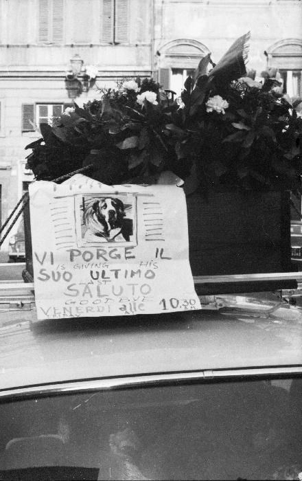 Funerale del cane Marco, il cane del bar Di Marzio. Partenza da Piazza Sant'Apollonia del carro funebre diretto al cimitero di Via dell'Imbrecciato