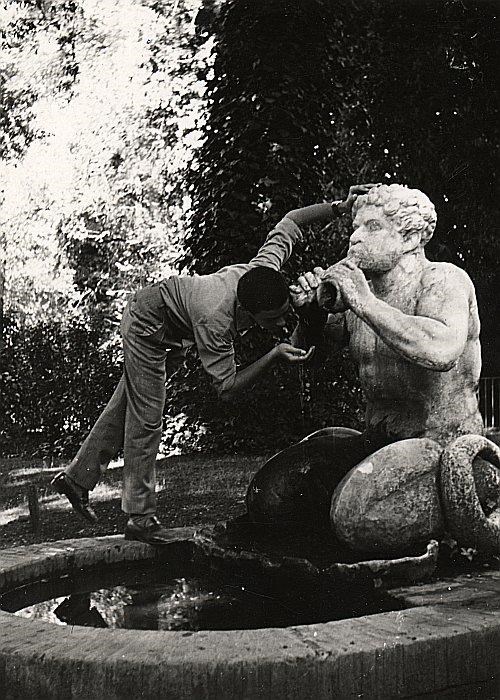Giancarlo Carosi mentre beve da una fontanella a Villa Borghese