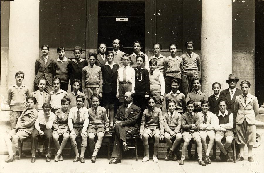 Giannetto Barrera e la sua classe, prima media, dell'Istituto "Massimo" alle Terme (stazione Termini)