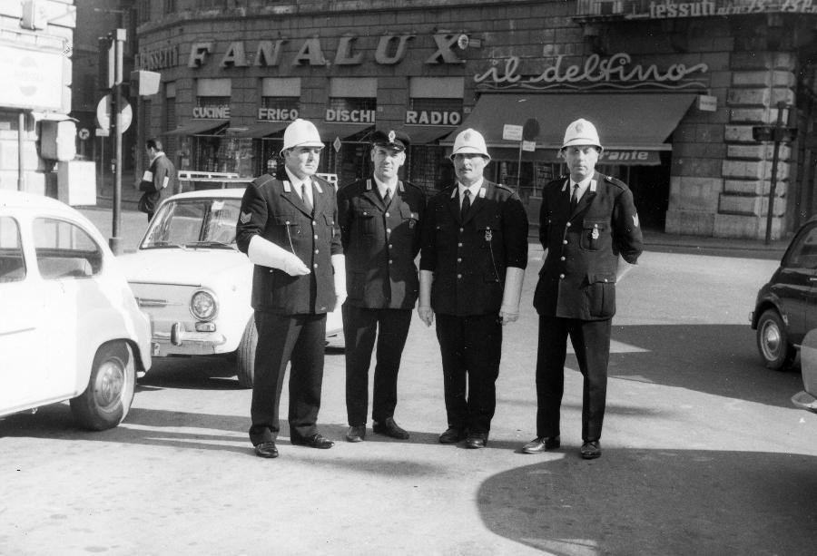 Gruppo di vigili urbani a Largo di Torre Argentina. Sulla sinistra, Daniele Monacelli