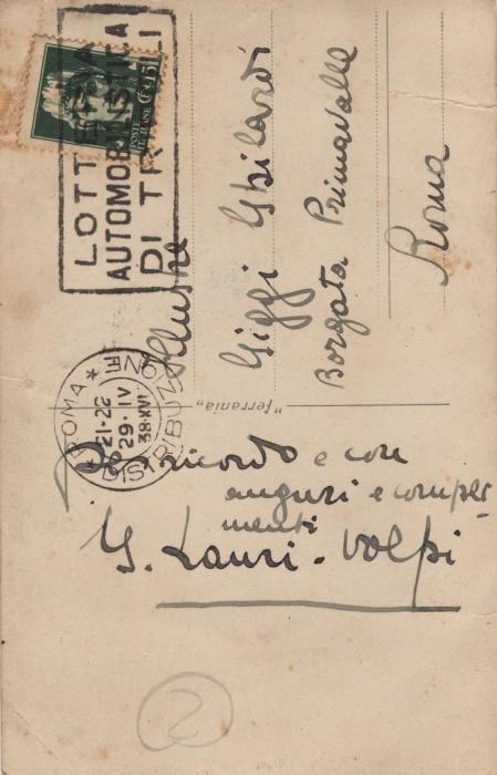 Per ricordo e con/ auguri e compli_/ menti/ G. Lauri. Volpi