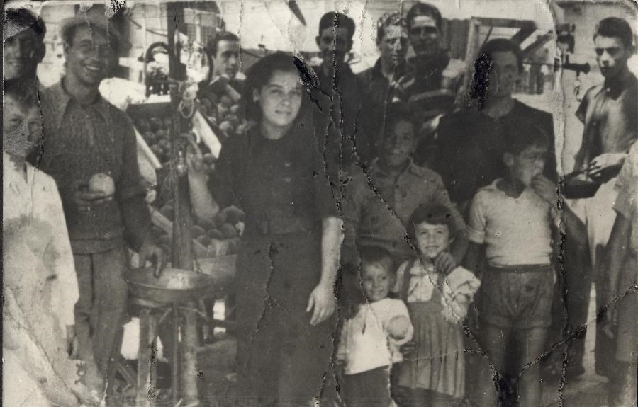 Jolanda Ventura con alcuni colleghi durante il lavoro al mercato di Piazza San Cosimato, a Trastevere