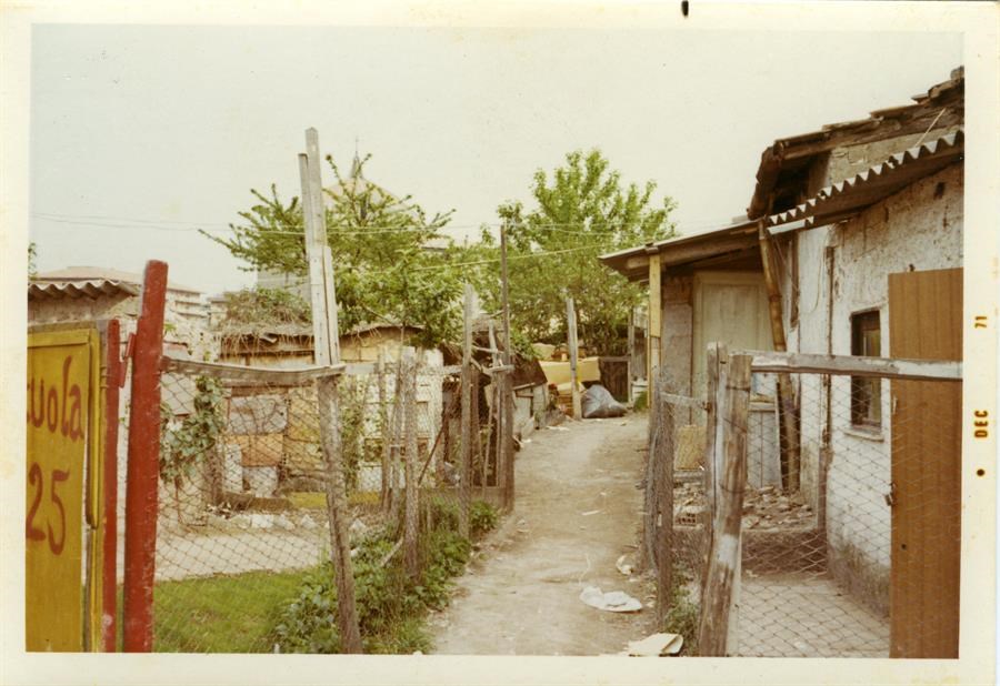 Le baracche dell'Acquedotto Felice. A sinistra l'ingresso del cortile della scuola 725