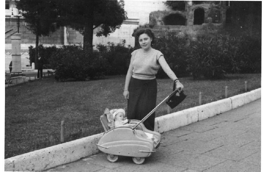Massimo Antonelli con sua madre Giuliana nei giardinetti davanti la scalinata del Campidoglio