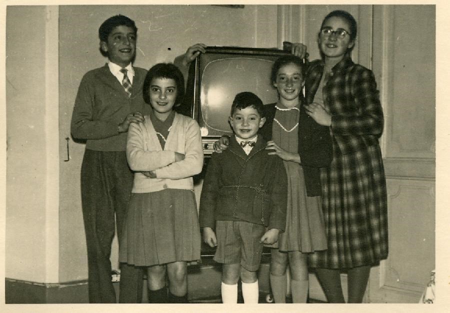 Massimo Antonelli il giorno del suo sesto compleanno con i cugini davanti il televisore