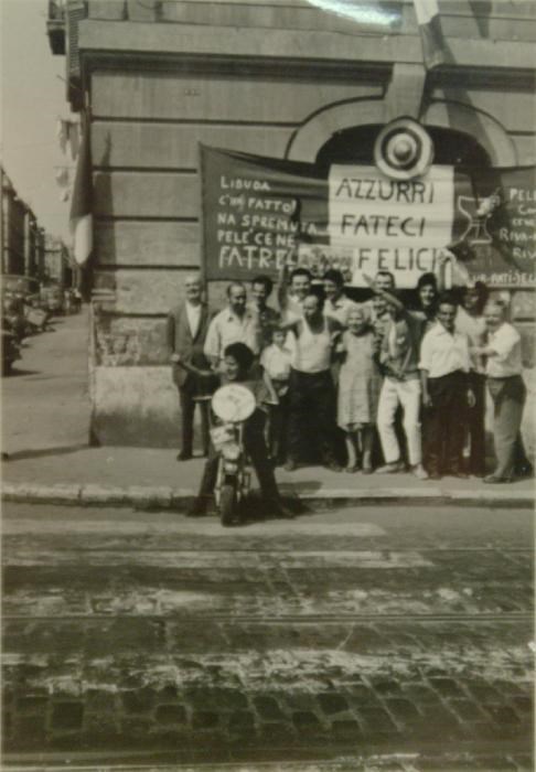 Mondiali di calcio, in attesa della finale tra la squadra nazionale e il Brasile. Via dei Reti, davanti al negozio di Antonio, il sarto