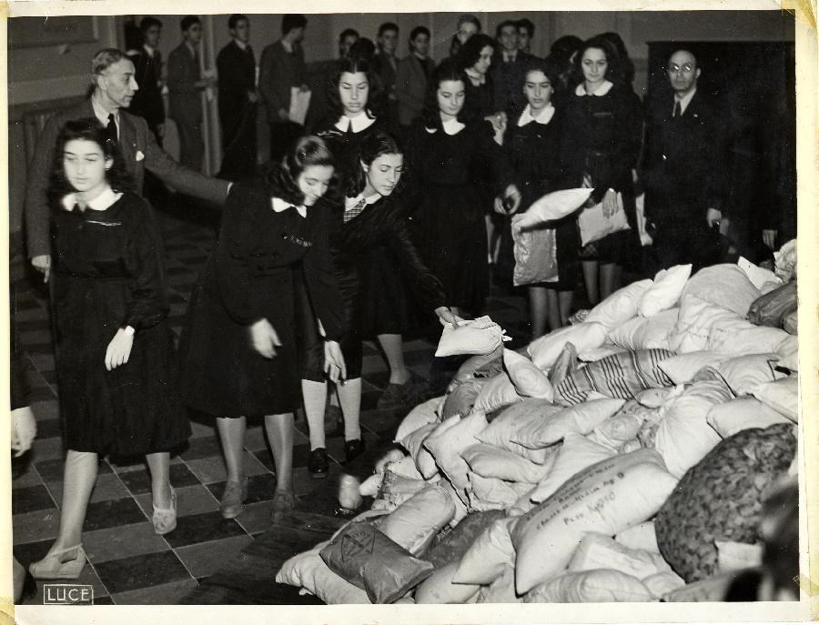 Paola Barrera durante la donazione per la guerra al Liceo "Torquato Tasso"