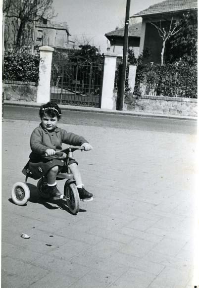 Patrizia Pulcini a Villa Serventi sul suo triciclo