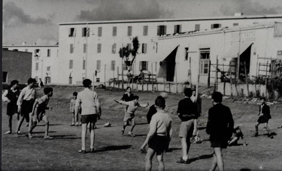 Ragazzi dell'ACLI che giocano una partita di pallone, Chiesa di Santa Maria della salute. Basta poco per inventarsi uno stadio a Primavalle