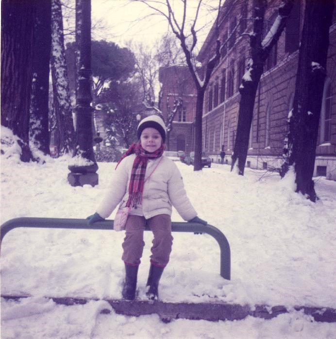 Sara Scarlatella davanti alle caserme di viale delle Milizie, dopo una nevicata