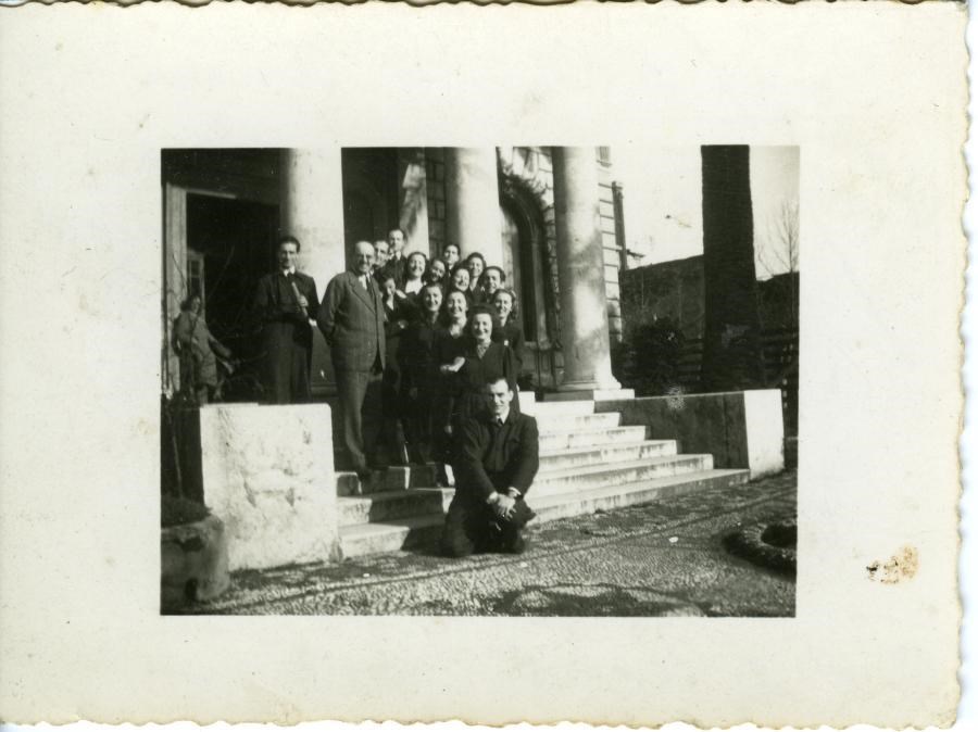 Silvio D'Amico, secondo da sinistra, con gli allievi dell'Accademia d'arte drammatica, tra cui Silvana, Anna, Laura, Alberto Bonucci, Catia Trotta, Luigi Soldi
