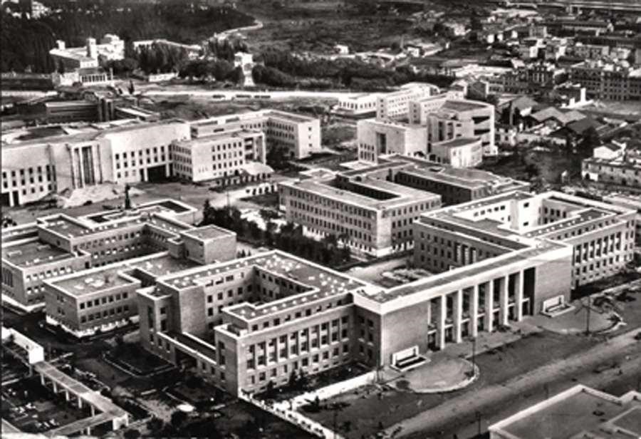 Veduta aerea della Città Universitaria e, in fondo, la Basilica di San Lorenzo