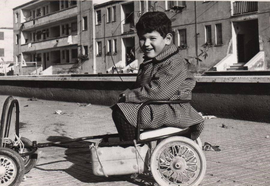 Via Giuseppe Mezzofanti (Primavalle). Fabio Grana a spasso sul suo trabiccolo artigianale