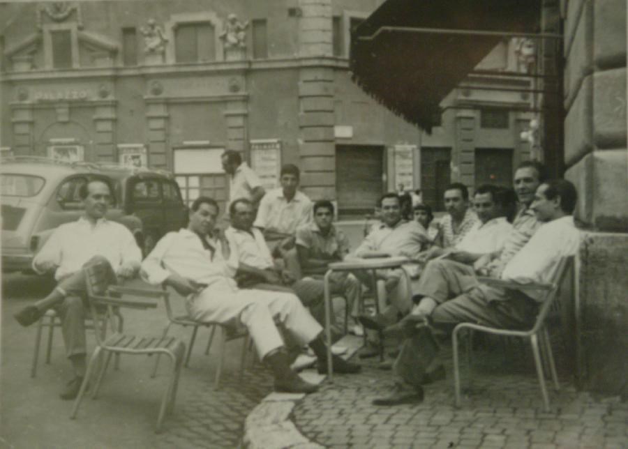 "Vitelloni" davanti al bar di Piazza dei Sanniti: Romano, Nino, Francesco, Mario, Angelo, Nello, Giorgio e Paolo