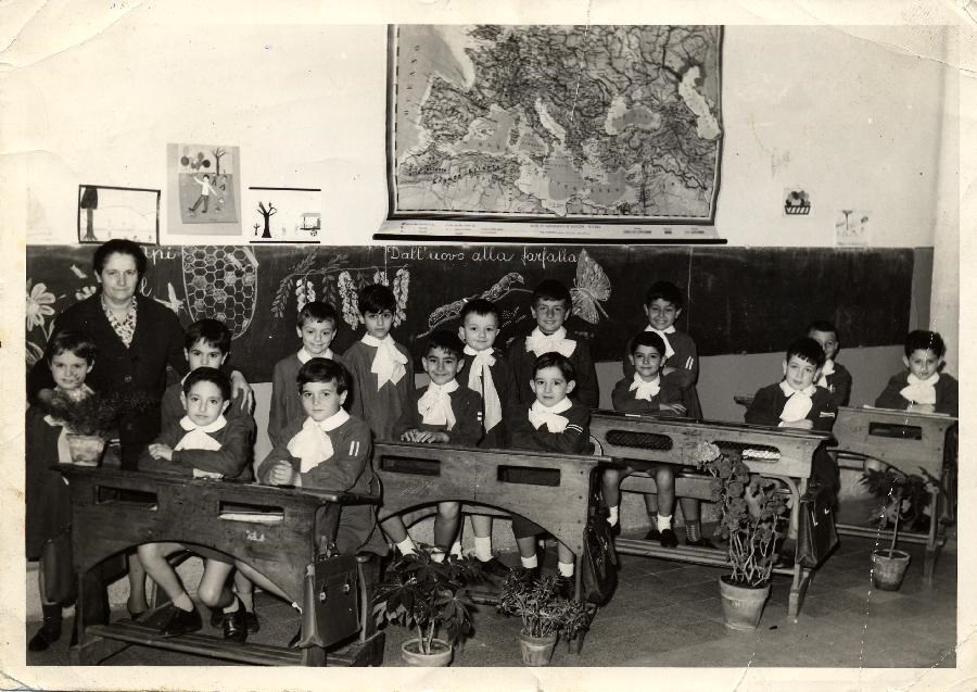 Vito Scarlatella e la sua classe seconda elementare alla "Luigi Pistelli" in via Monte Zebio