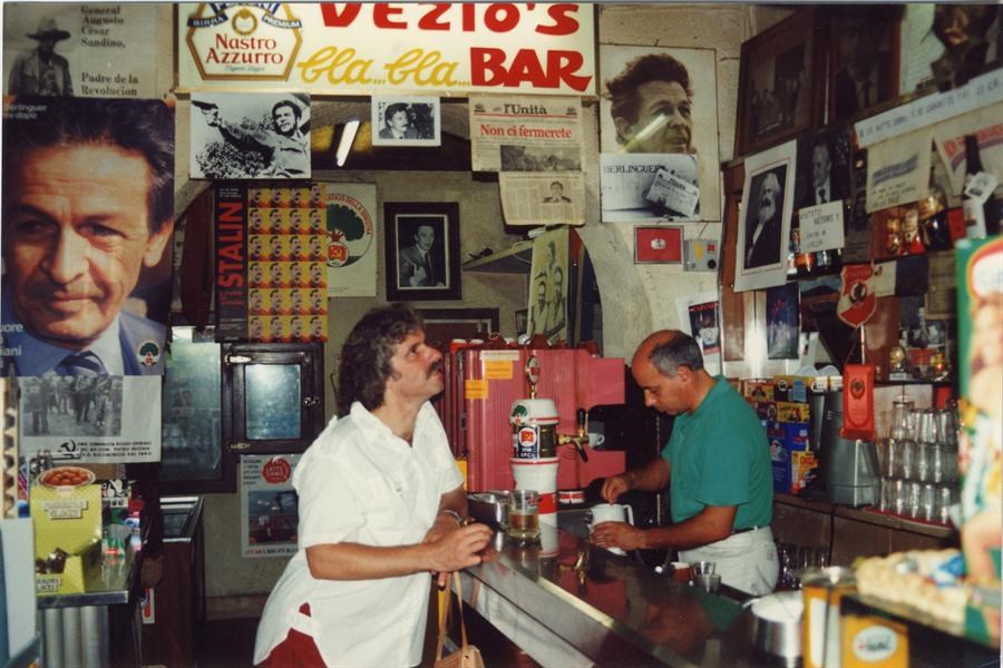 Miriam Mafai scriveva che alle spalle del palazzo delle Botteghe Oscure «c'è una delle piazzette più singolari di Roma, piazza Margana, con una torre antica, una trattoria, un corniciaio, un robivecchi e un glicine che si arrampica, rigoglioso e profumato, sulla facciata di una casa: una piazzetta di paese, dove trovi, come in ogni piazzetta di paese, un caffè. Il padrone si chiama Vezio, è un comunista duro e puro che conserva alle pareti le fotografie di Togliatti, di Che Guevara e di Berlinguer, sulle mensole, tra le bottiglie, i busti di gesso di Lenin e Stalin, e nel cuore la memoria dei compagni che ha conosciuto e ai quali ha servito per anni caffè, cappuccini, cornetti e aperitivi. Ma solo tè con un’abbondante dose di Glen Grant per Berlinguer e sempre e soltanto un bicchiere di latte per Natta» (Miriam Mafai, Botteghe Oscure addio. Com’eravamo comunisti, Milano, Mondadori, 1996, p. 5).